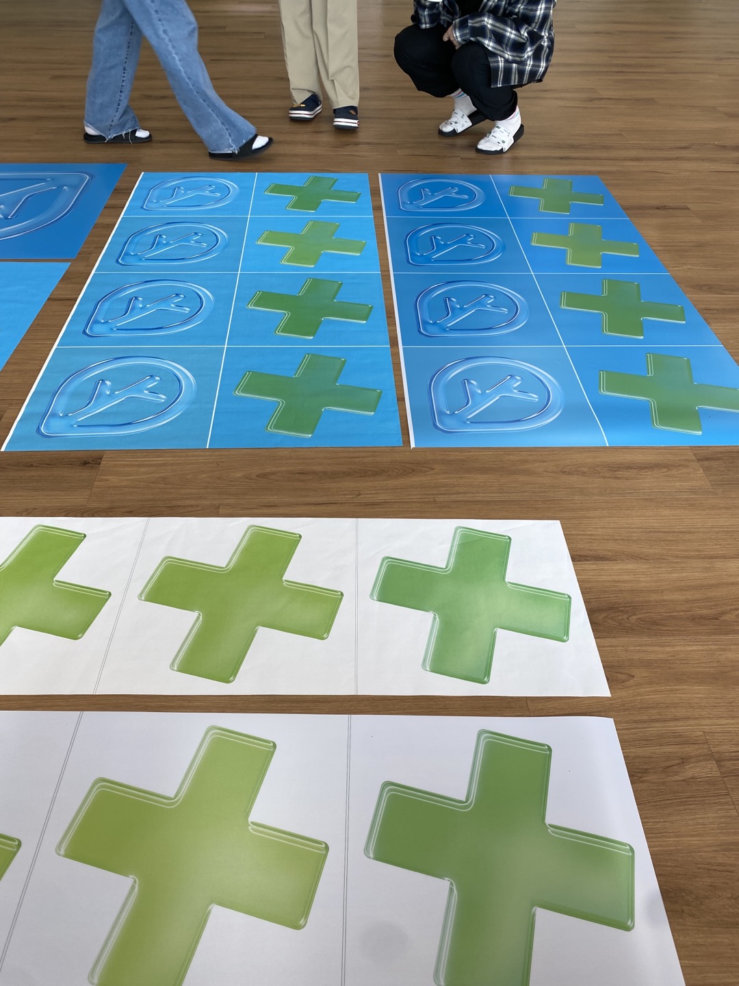 CMYK 등을 고려해 적용한 컬러 코드가 실제로 구현될 때는 차이가 있고 인쇄하는 기계마다 출력되는 컬러 톤도 다르더라고요. 몇 번을 소통을 했는지 모르겠어요. 시안을 퀵으로 서너 번 받아보고 겨우 골랐어요. 초반에 인쇄 업체 – 대행사와 현장 제작물의 컬러를 조율하는 과정이 예상하지 못한 부분이라 어렵게 느껴졌어요.