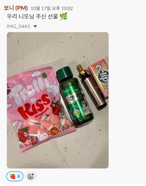 소소하지만 한 번이라도 팀원들과 이야기할 기회가 생기고, 같이 공유할 수 있는 이야기들이 생기길 바라는 마음이기도 했는데요. 이틀 간 팀원들 사이에서 마니또를 추측해보는 것부터 시작해서, 소소한 에피소드가 많이 생겼답니다.